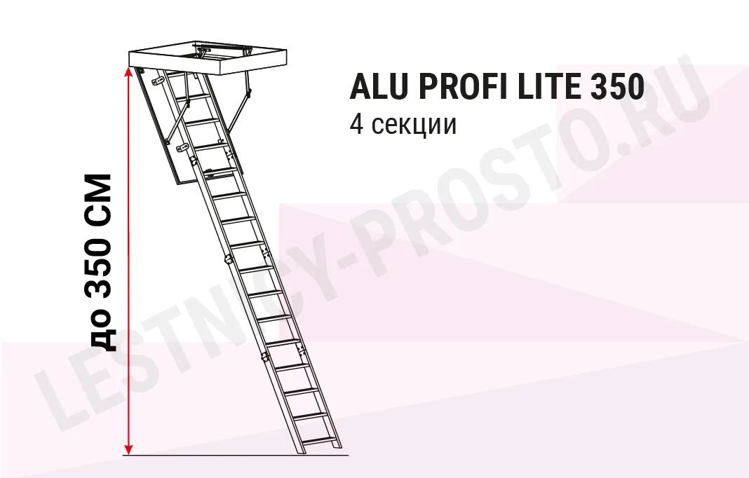 | Чердачная лестница алюминиевая с люком OMAN ALU PROFI LITE LONG 70х120 см, h-350 см |