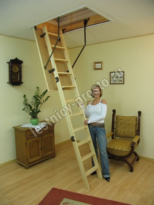 Специальные пружинные механизмы позволяют открывать и закрывать люк плавно. Лестницу легко собрать самостоятельно.