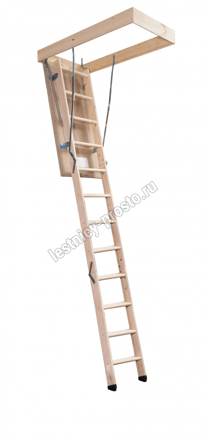 Обеспечивает легкий, комфортный подъем на верхние этажи частных домов, загородных коттеджей и дач. В изготовлении лестницы используется дерево хвойных пород. Лестница оснащена люком из водостойкого ДСП, который можно перекрасить в подходящий для интерьера цвет.