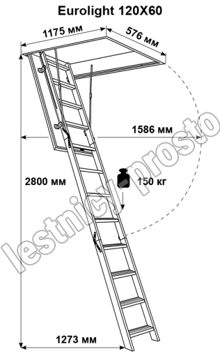 Лестница чердачная "EUROLIGHT" 120 x 60, В КАРТОННОЙ УПАКОВКЕ