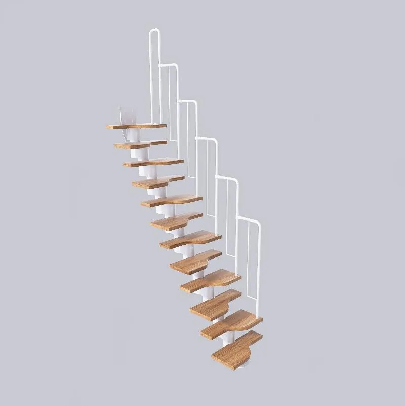 Удобная лестница на косоурах с поворотом на 90 градусов. Открытые ступени визуально облегчают конструкцию. Ограждения по всему маршу обеспечивают дополнительную безопасность и возможность декорирования. Монтаж осуществляется силами двух человек на объекте по указаниям, приведенным в паспорте на лестницу.