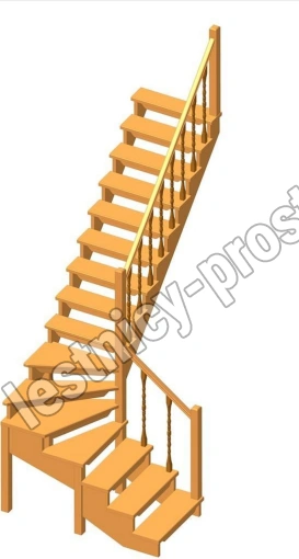 Удобная лестница на косоурах с поворотом на 90 градусов. Открытые ступени визуально облегчают конструкцию. Ограждения по всему маршу обеспечивают дополнительную безопасность и возможность декорирования. Монтаж осуществляется силами двух человек на объекте по указаниям, приведенным в паспорте на лестницу.