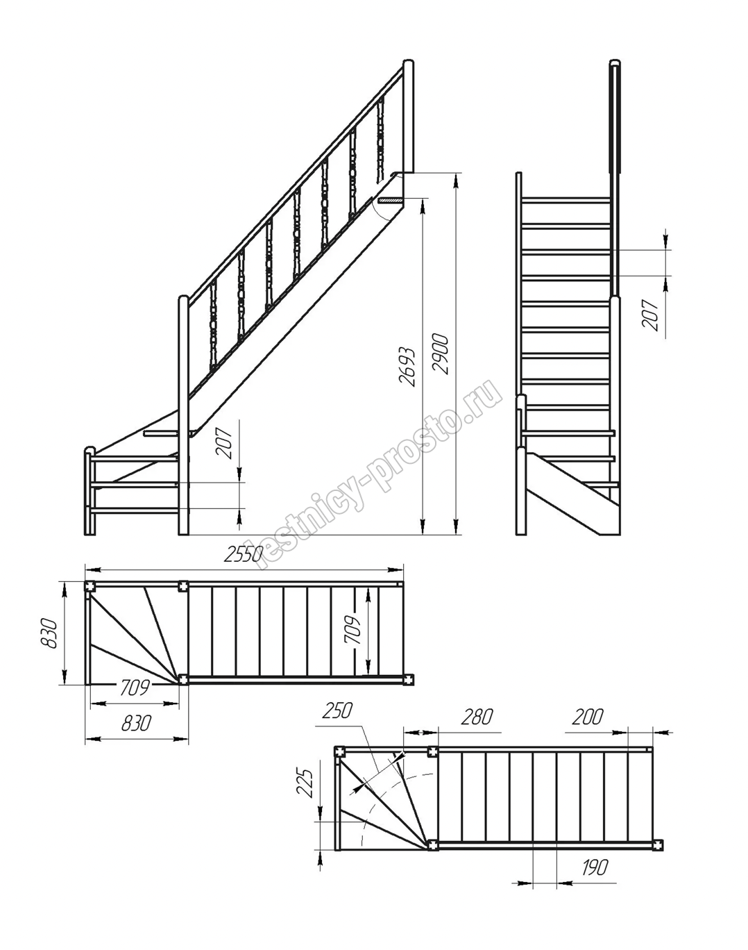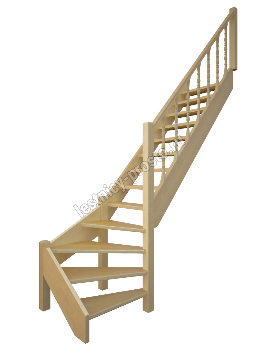 Лестница выполнена из древесины хвойных пород 8 % влажности.