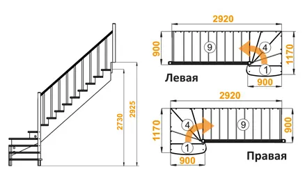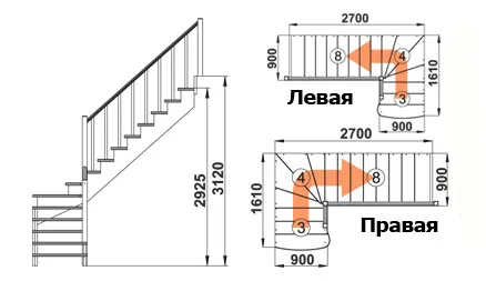 | Лестница из сосны К-001м/1 под покраску с подступёнками |