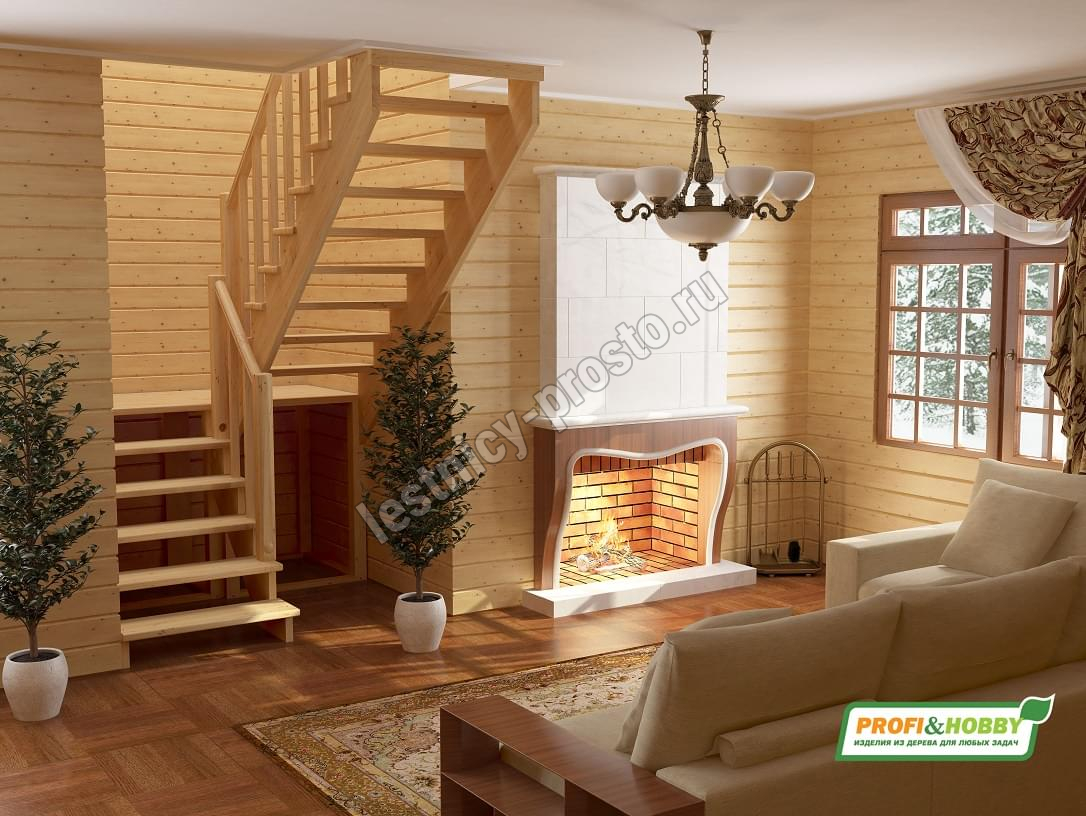 Ступени и поручень лестницы изготовлены из бука, остальные элементы из сосны.