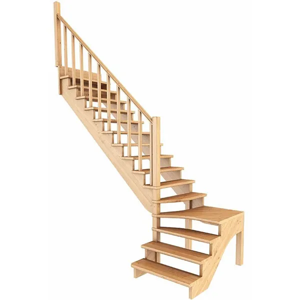 Базовый комплект включает в себя деревянные элементы лестницы и ограждения без какого-либо покрытия.