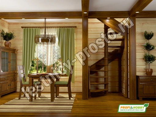 Ступени и поручень лестницы изготовлены из дуба, остальные элементы из сосны.