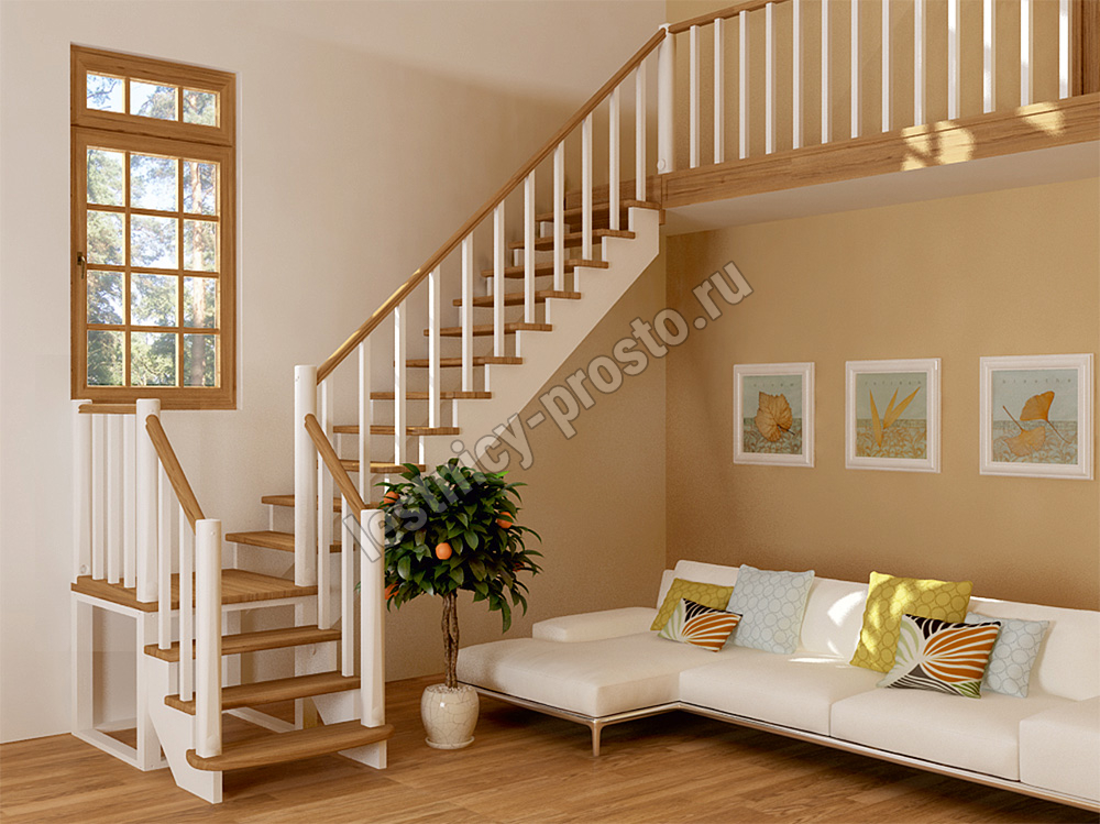 Лестница из сосны К-022М с подступёнками