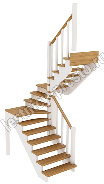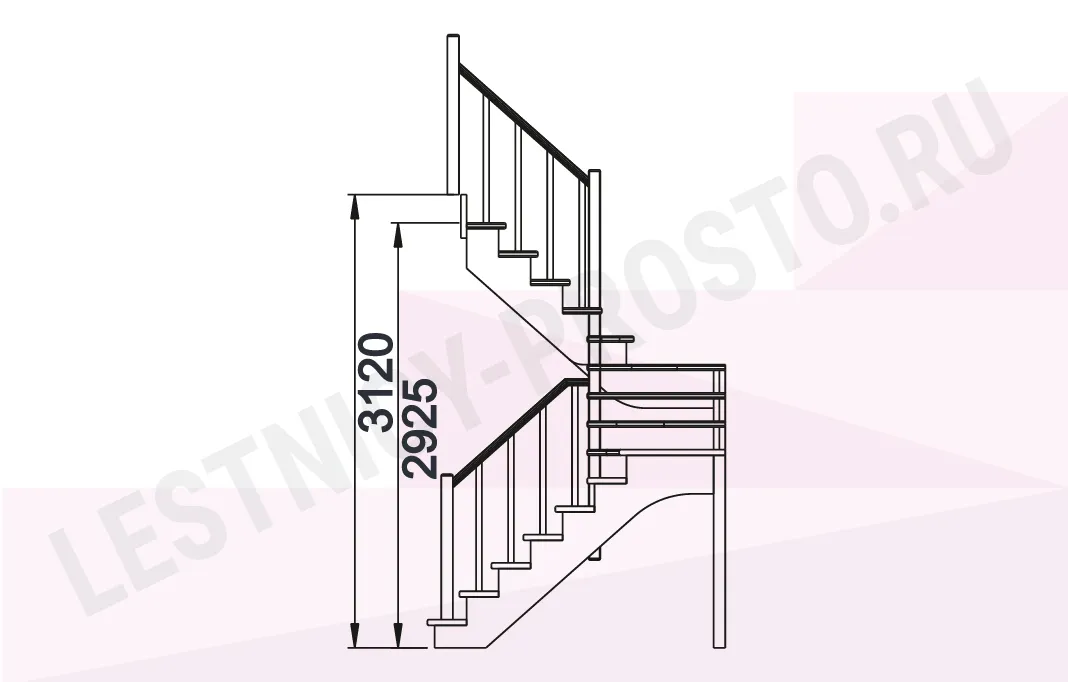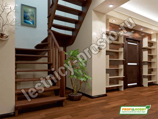 Ограждение лестницы с одной стороны. Базовый комплект включает в себя деревянные элементы лестницы и ограждения без какого-либо покрытия.