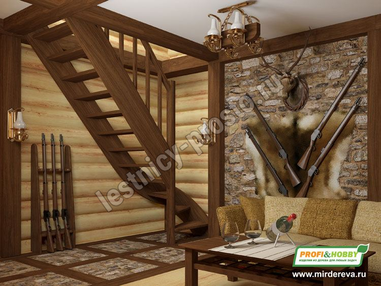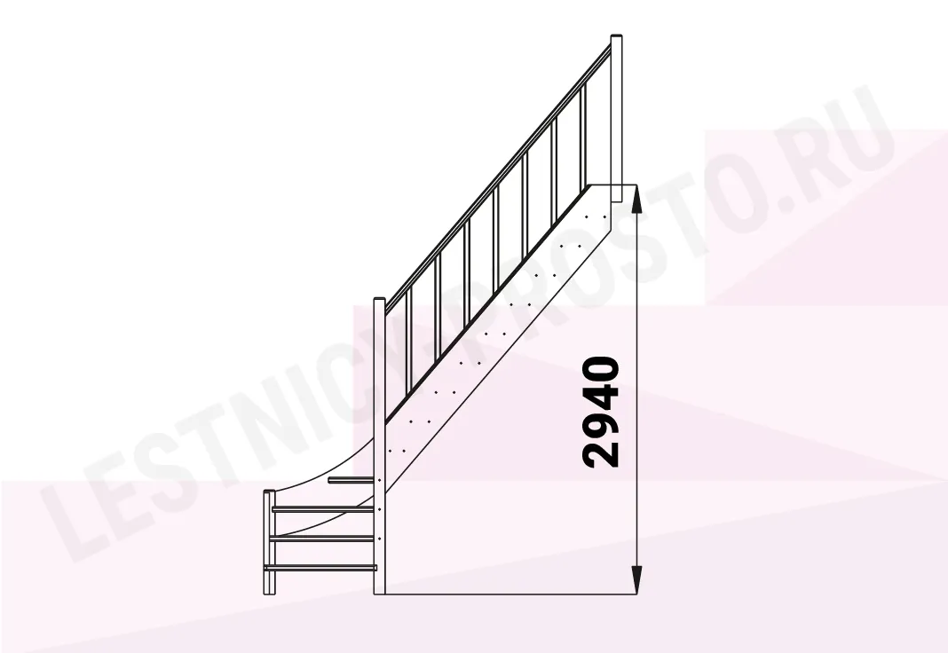 Базовый комплект включает в себя деревянные элементы лестницы и ограждения без какого-либо покрытия.