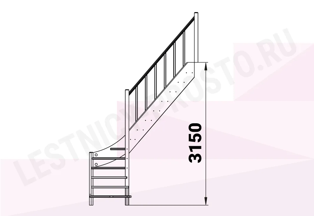 Базовый комплект включает в себя деревянные элементы лестницы и ограждения без какого-либо покрытия.