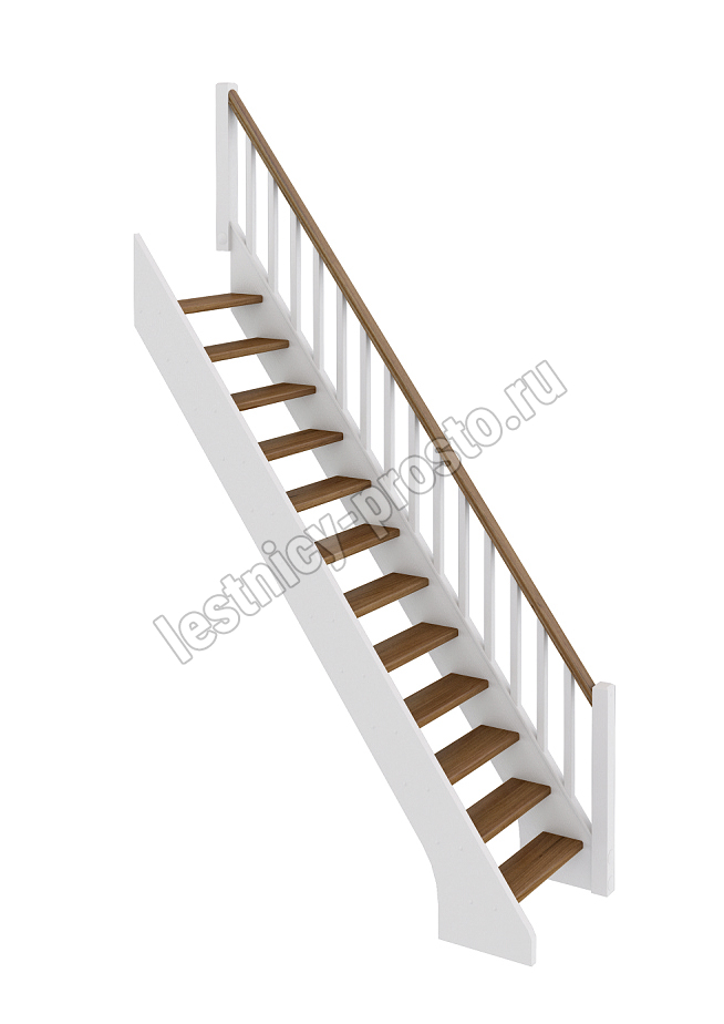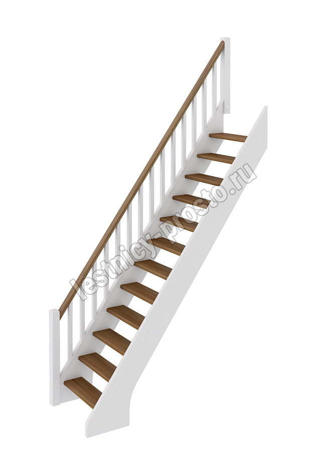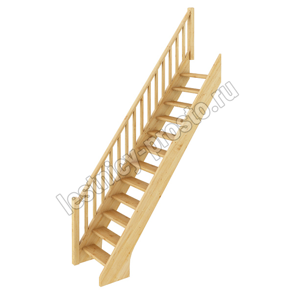 Базовый комплект включает в себя деревянные элементы лестницы и ограждения без какого-либо покрытия. Ограждение можно установить справа или слева.