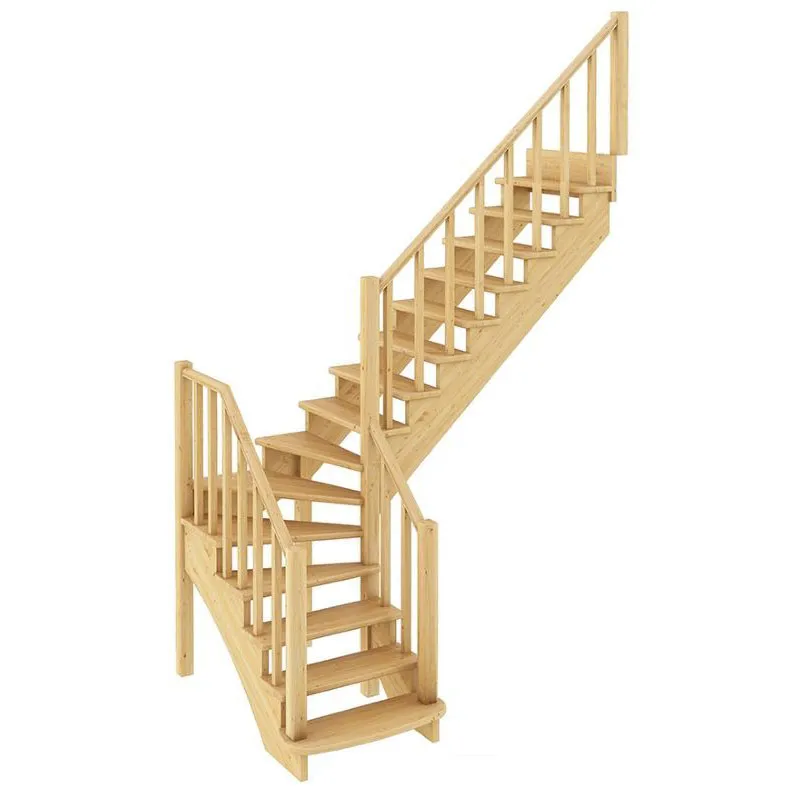 Ступени и поручень лестницы изготовлены из ясеня, остальные элементы из сосны.