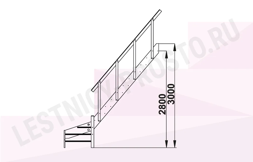 Недорогая простая лестница, хорошо использовать как временный вариант. В комплекте поручень.