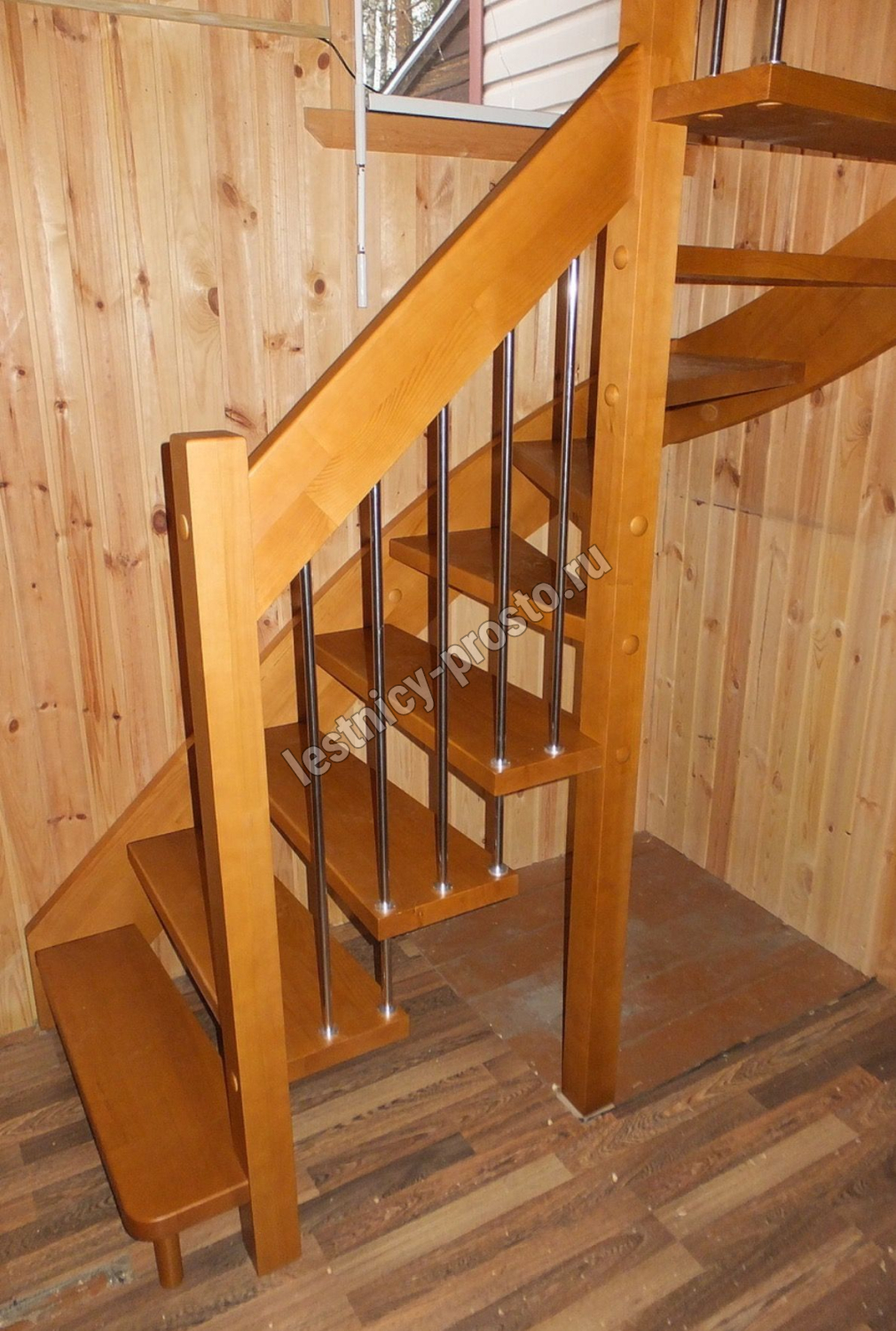 Надёжная современная лестница выполнена по немецкой технологии. Стоимость указана для лестницы с ограждением (с одной стороны); Поставляется в разобранном виде, в комплекте необходимый крепёж; Лестницу можно собрать самостоятельно; Так же, вы можете заказать услугу монтажа нашими специалистами; 4 вида породы дерева для изготовления лестницы: сосна, бук, ясень, дуб; возможна комбинированная лестница: из сосны (ступени бук, ясень, дуб); Деревянные элементы без какого-либо покрытия, отшлифованы, готовы к покраске. За дополнительную плату, вы можете изменить любые параметры, а именно: увеличить глубину ступени; увеличить ширину марша до 900 мм. и выше; заказать подступенки к лестнице; заказать отделку перекрытия (между 1-м и 2-м этажами); изготовить дополнительный промежуточный марш; заказать ограждение 2-го этажа; покраска в любой цвет или несколько цветов или покрытие защитными средствами; дополнение балясины из нержавеющей стали деревянными элементами; покраска балясин из нержавеющей стали порошковой краской в цвет RAL.