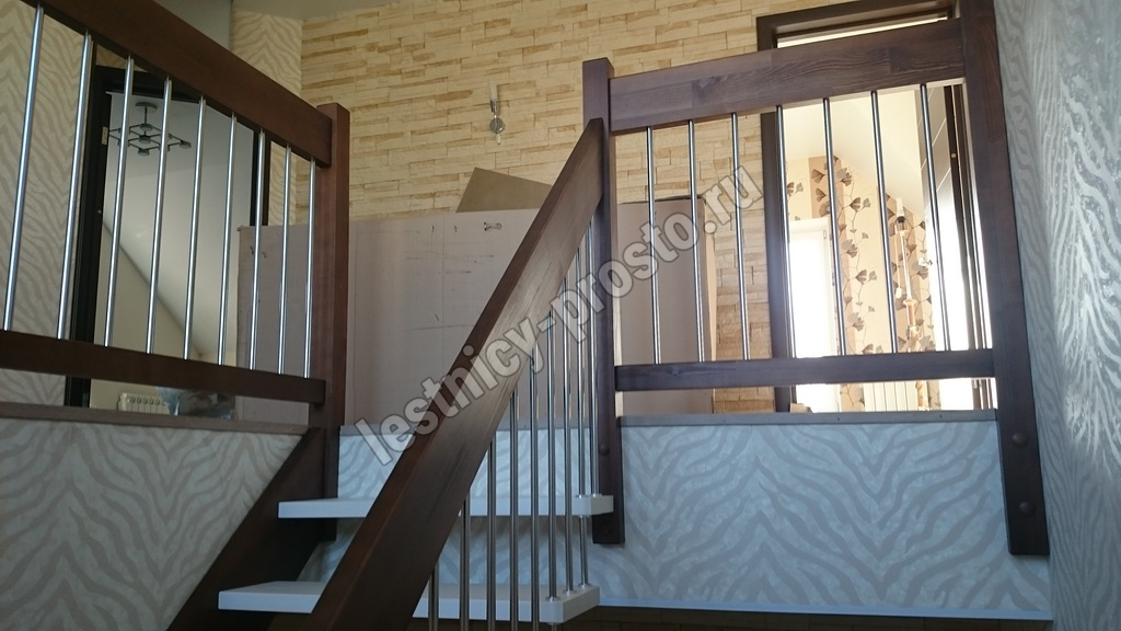 Надёжная современная лестница выполнена по немецкой технологии. Стоимость указана для лестницы с ограждением (с одной стороны); Поставляется в разобранном виде, в комплекте необходимый крепёж; Лестницу можно собрать самостоятельно; Так же, вы можете заказать услугу монтажа нашими специалистами; 4 вида породы дерева для изготовления лестницы: сосна, бук, ясень, дуб; возможна комбинированная лестница: из сосны (ступени бук, ясень, дуб); Деревянные элементы без какого-либо покрытия, отшлифованы, готовы к покраске. За дополнительную плату, вы можете изменить любые параметры, а именно: увеличить глубину ступени; увеличить ширину марша до 900 мм. и выше; заказать подступенки к лестнице; заказать отделку перекрытия (между 1-м и 2-м этажами); изготовить дополнительный промежуточный марш; заказать ограждение 2-го этажа; покраска в любой цвет или несколько цветов или покрытие защитными средствами; дополнение балясины из нержавеющей стали деревянными элементами; покраска балясин из нержавеющей стали порошковой краской в цвет RAL.