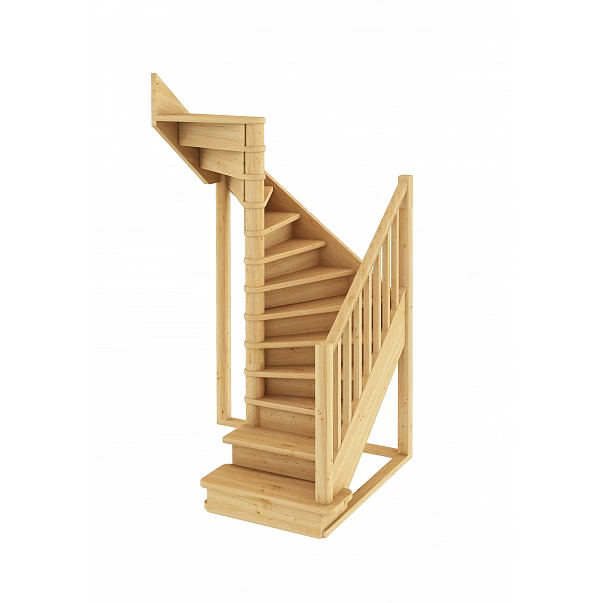 Лестница Универсал изготавливается как с поворотом направо, так и с поворотом налево. Под заказ возможно изготовление лестницы Универсал с высотами этажа: 2300 мм, 2500, мм, 2700 мм, 2900 мм, 3100 мм. В стандартной комплектации лестница поставляется в натуральном цвете, то есть без окрашивания. Первая ступень может быть пригласительной (со скругленными краями или прямой). Базовые ограждения можно заменить на ограждения любого другого вида.