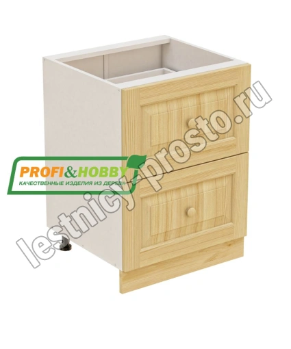Тумба 2 ящика 600х530х720 + фасад сосна бесцветный акриловый лак