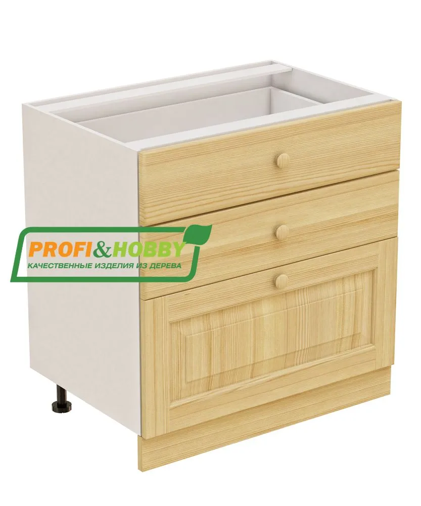 Тумба 3 ящика 800х530х720 + фасад сосна бесцветный акриловый лак