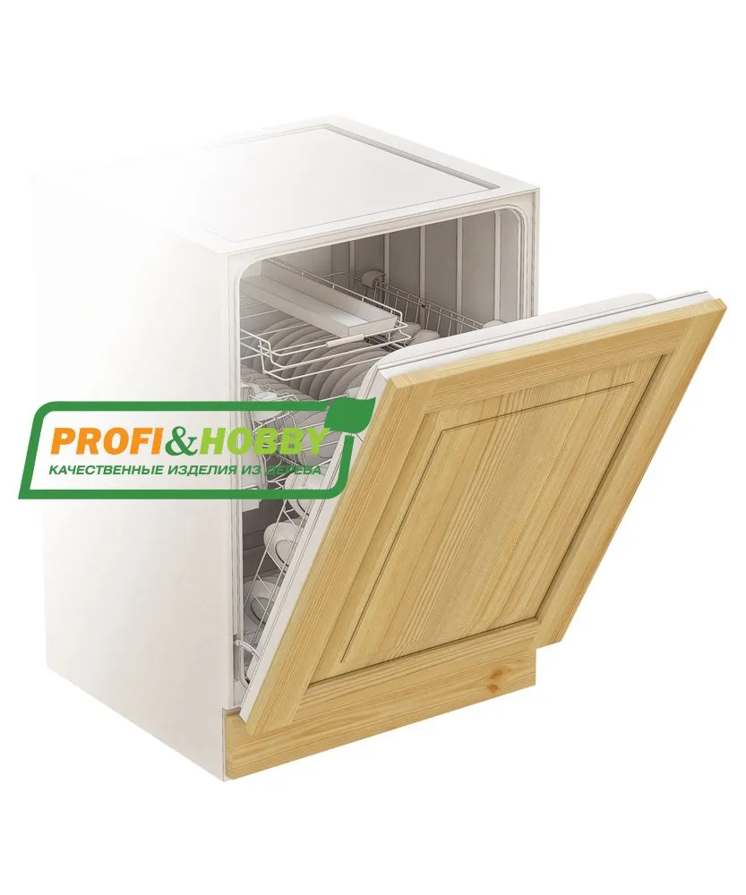 Фасад для посудомоечной машины изготовлен из 100% массива дерева, без шпона и без МДФ/ДСП.