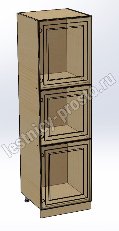 Пенал 2040 х 600 х 560 филенка, 3 двери (без полок), сосна, без покраски