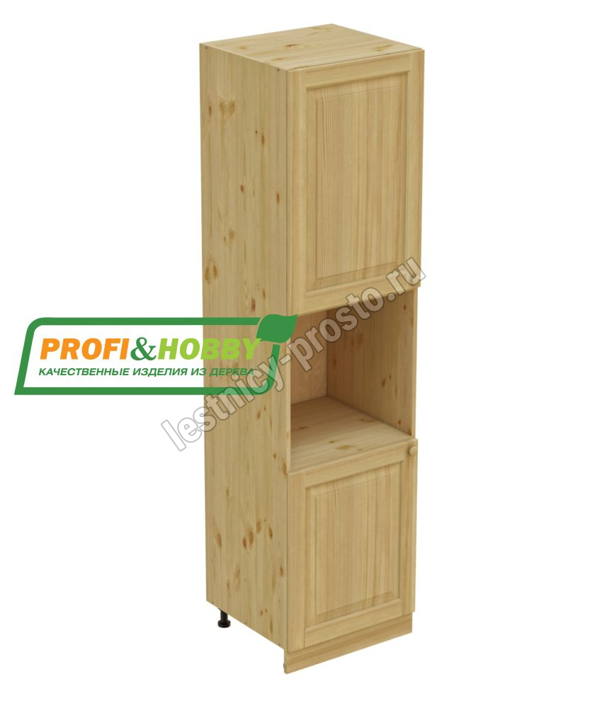 Шкаф высокий (пенал) изготовлен из 100% массива дерева, без шпона и без МДФ/ДСП.