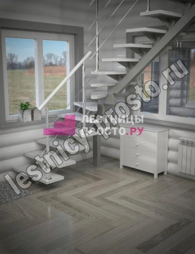 Каркас лестницы PROSTO MONO STEP TRINITY г-образная забежная с ограждением