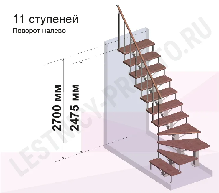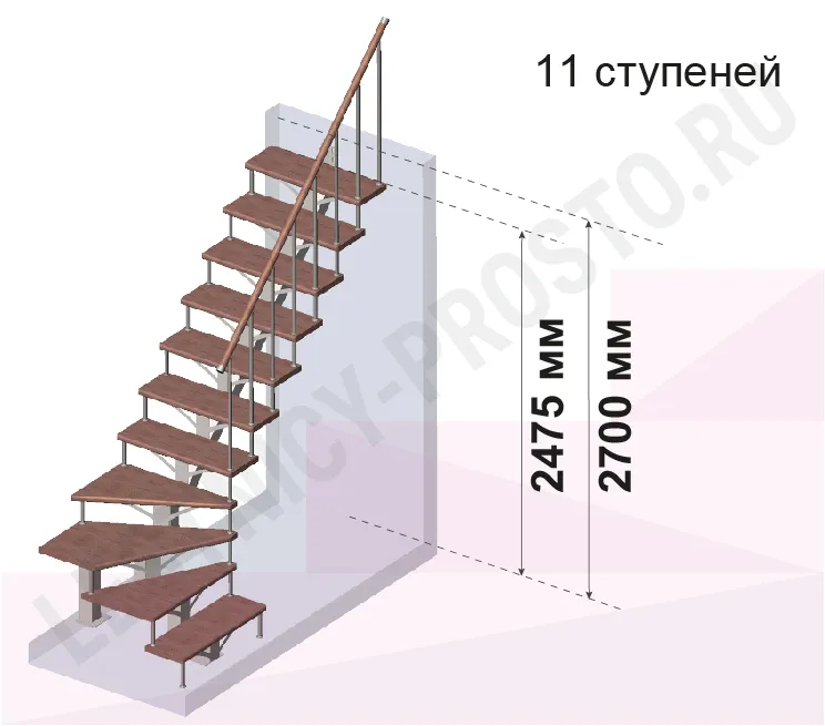 Лестница PROSTO MONO Г-образная h270 см, ступени бук