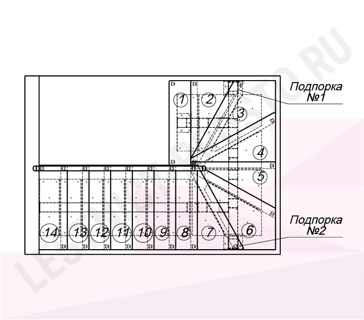 Комплектация Каркас лестницы, ступени, без ограждения