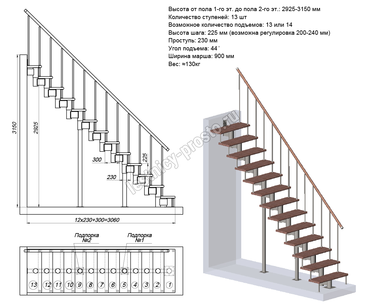 Модульная лестница PROSTO Module прямая/ h292.5 см
