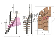 Лестница Prosto Urban Black гусиный шаг 700 мм, h198-288 см (11 ступеней), бук