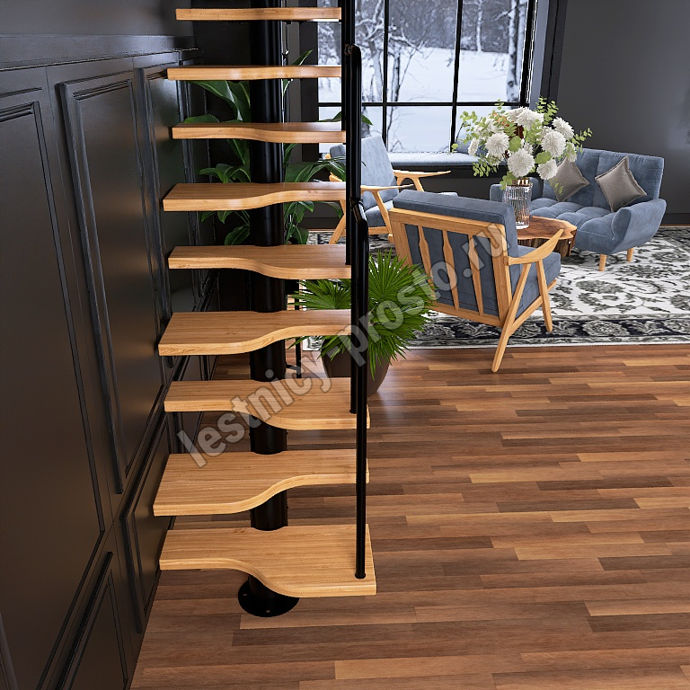 Лестница Prosto Urban Black гусиный шаг 700 мм, h234-336 см (13 ступеней), бук