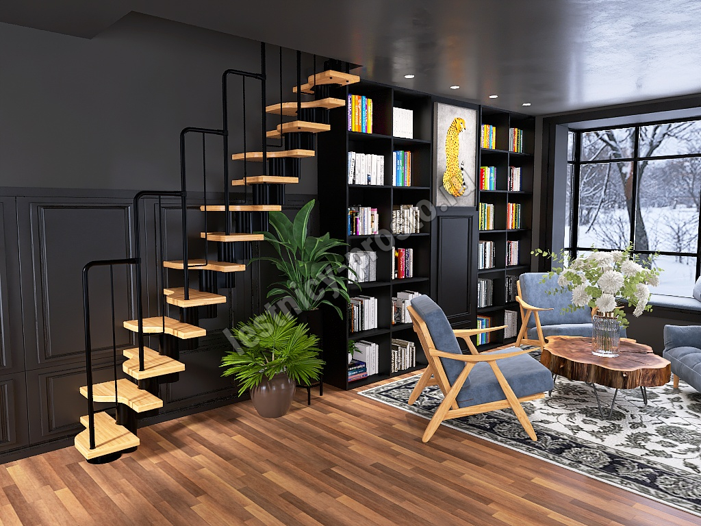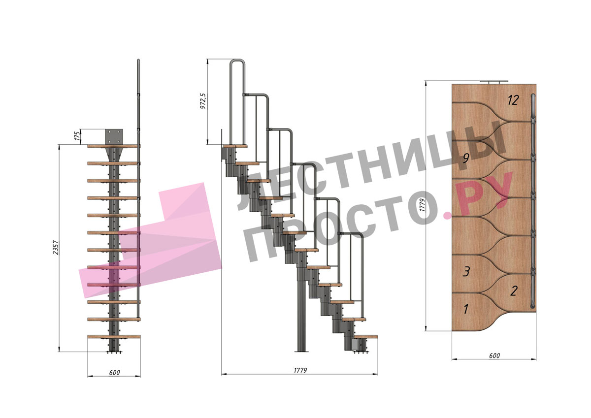 Лестница Prosto Urban Black гусиный шаг 600 мм, h216-312 см (12 ступеней), ясень