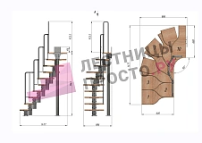 | Лестница Prosto Urban White гусиный шаг 600 мм, h216-312 см (12 ступеней), дуб |