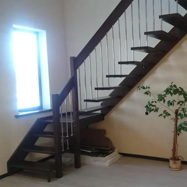 соответствует картинке, но вы не ограничены в его выборе. Лестницу можно приобрести и без ограждения, и с любым другим. Устанавливать на такую лестницу можно почти всё, начиная от классических деревянных балясин и заканчивая эксклюзивными коваными изделиями.