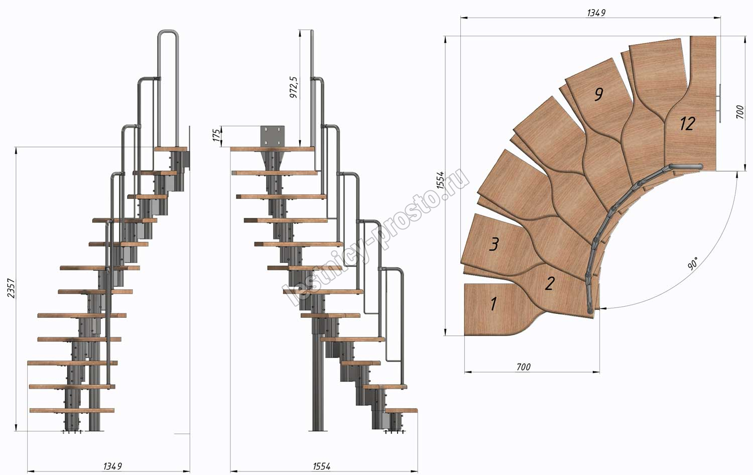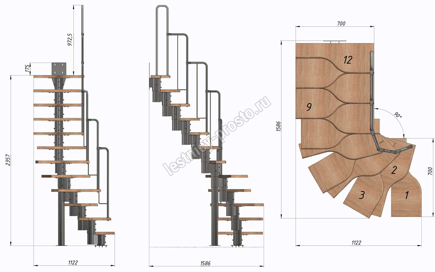 Высота лестницы 2160 - 3120 (12 ступеней) мм