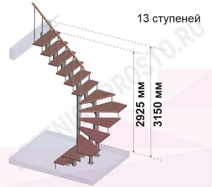 Модульная лестница PROSTO MODULE П-образная/ h315 см