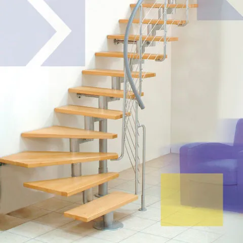 ATRIUM DIXI PLUS - это современная и удобная лестница, занимающая сравнительно мало места. В набор входят 11 конструктивных элементов и 11 ступеней из массивного лакированного дерева (8 прямых ступеней и 3 поворотные ступени). Есть возможность регулировать высоту ступеней. В комплект входят перила с вертикальными стойками и горизонтальными перегородками.