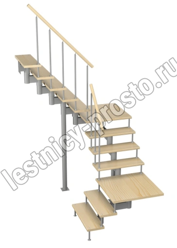 Модульная лестница Комфорт 225 2700-2820, Черный, Сосна, Нержавеющая сталь