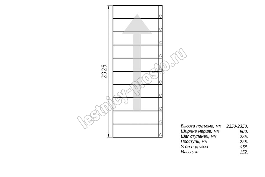 Высота лестницы 2250 - 2350 мм