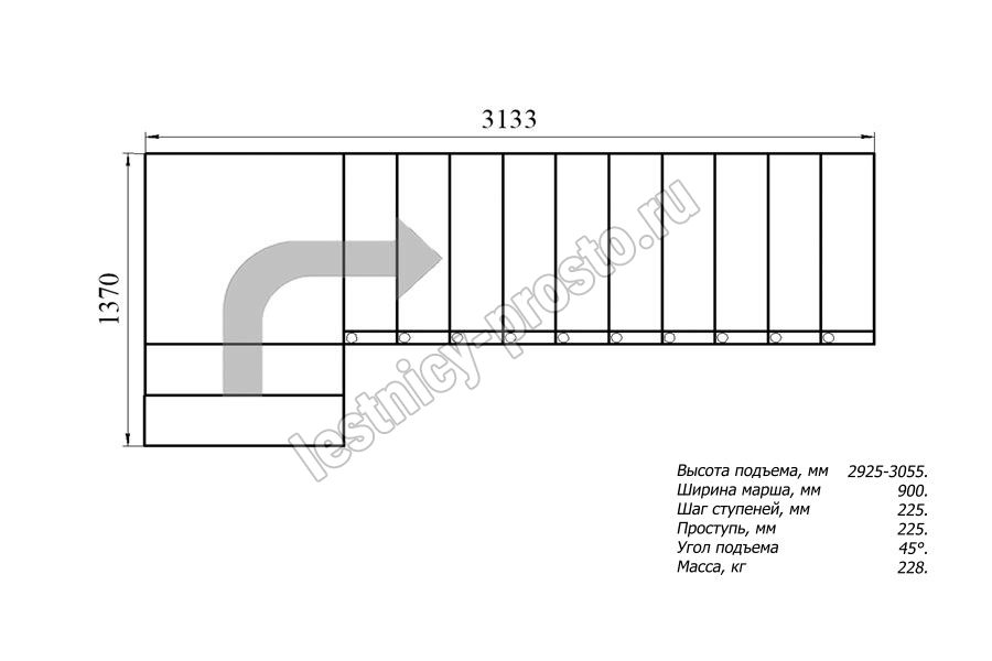 Модульная лестница Статус 225 2925-3055, Белый, Сосна, Крашеная, Без Ступений