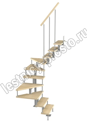 Модульная малогабаритная лестница Эксклюзив 2250-2475, Серый, Лиственница, Нержавеющая сталь
