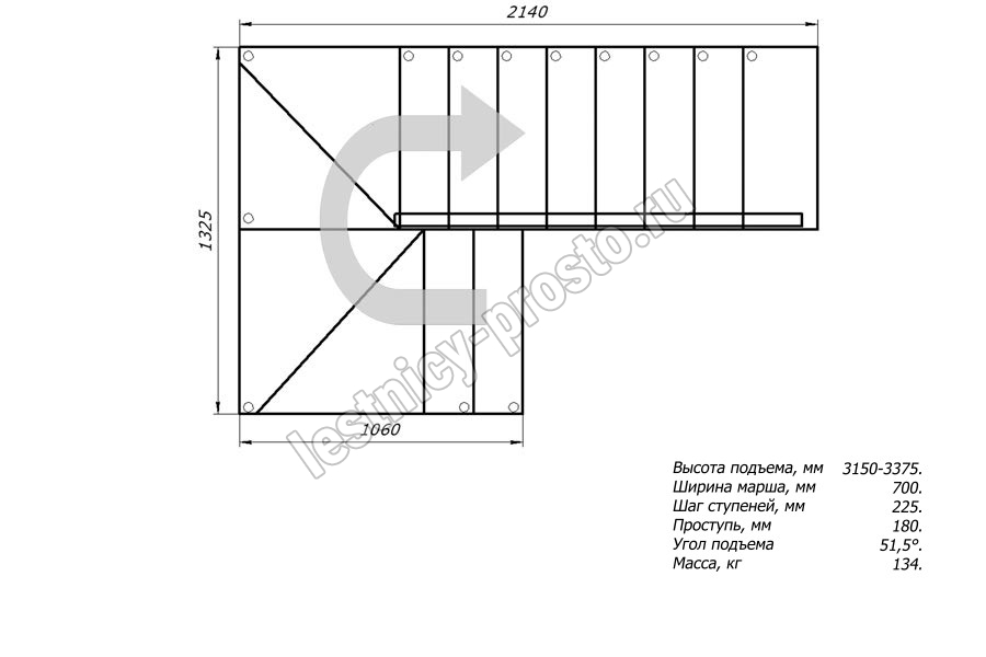 Высота лестницы 3150 - 3375 мм