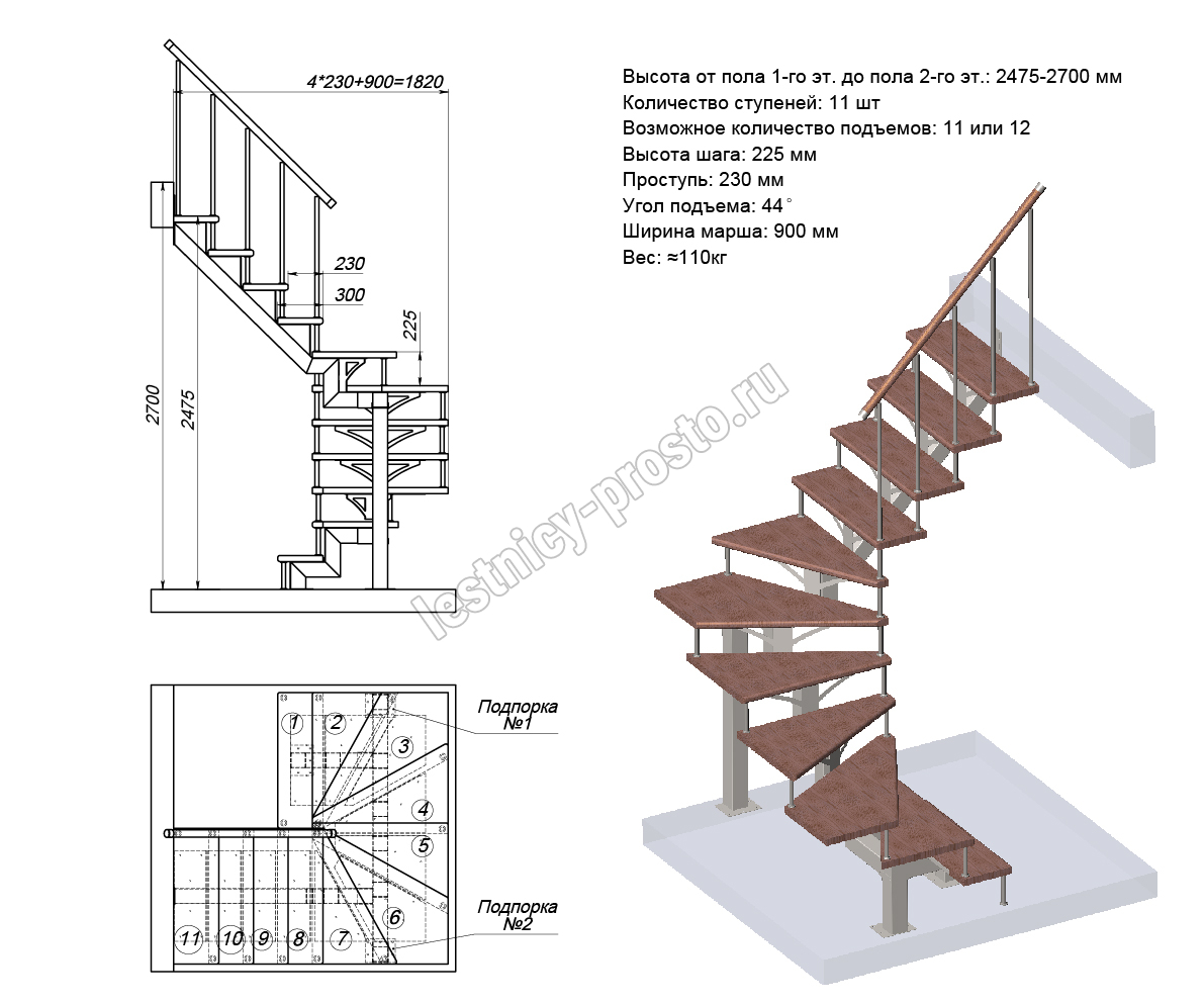 Высота лестницы 1800 - 3375 мм