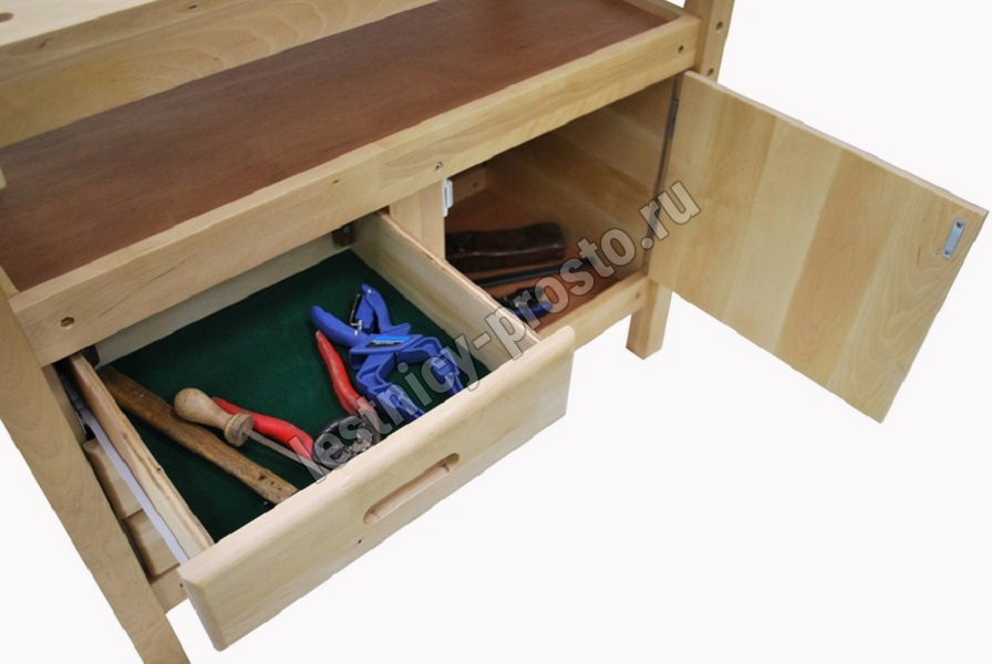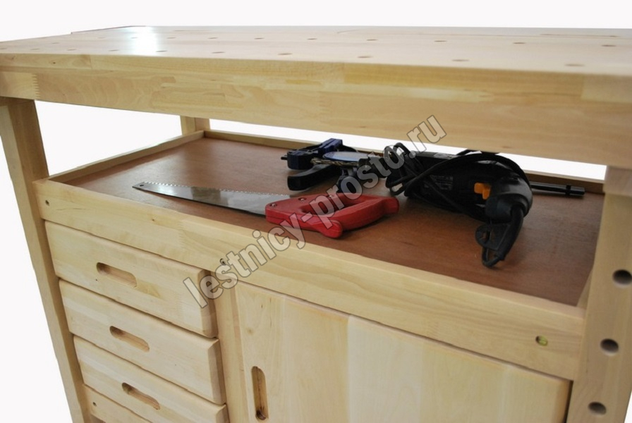 Все верстаки изготовлены из особо прочной древесины, обладают повышенной прочностью и износостойкостью, легко собираются и комплектуются удобными секциями для хранения инструментов.