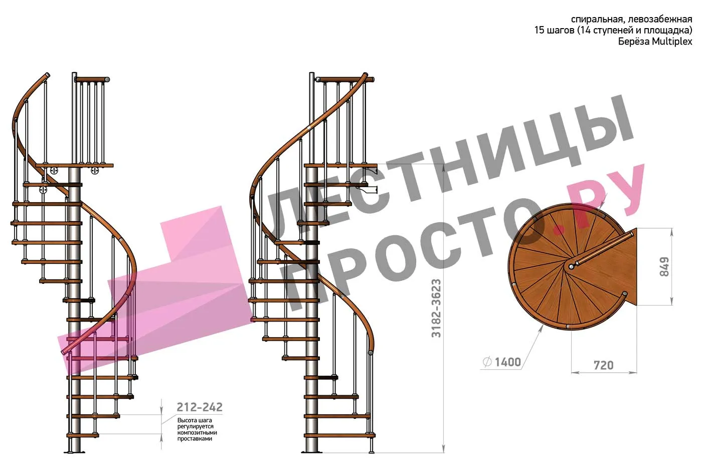 Винтовая лестница Prosto Spiral Black D160см, h254.5-289.8 см