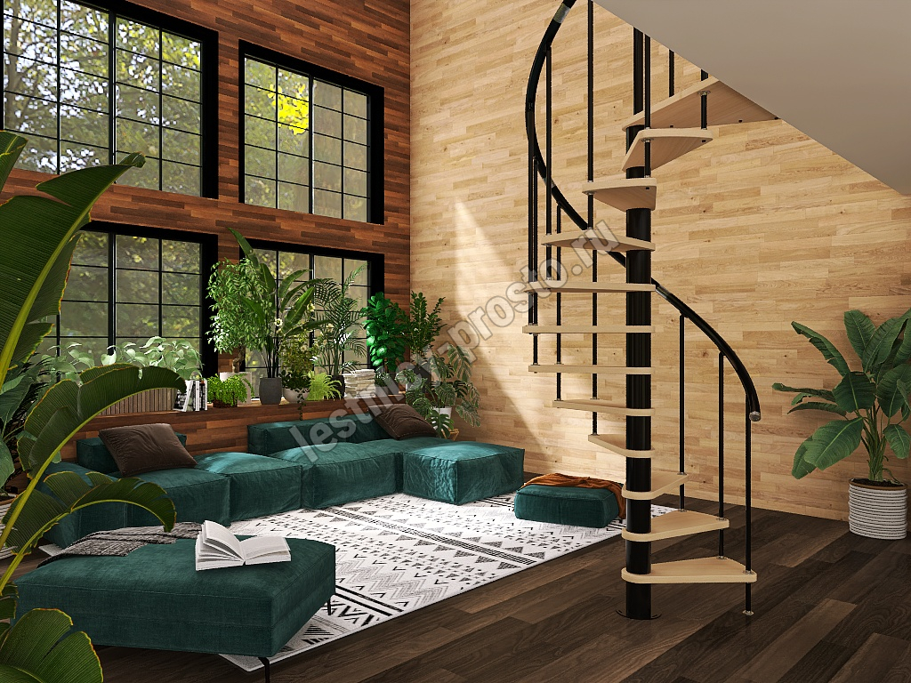 Винтовая лестница Prosto Spiral Black D160см, h318.2-362.3 см
