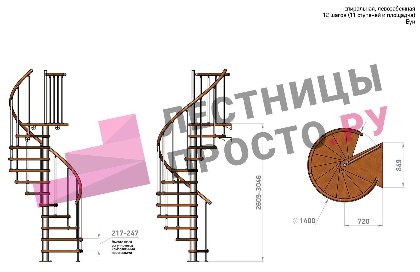 Правая, d=140см, 14 ступеней + площадка