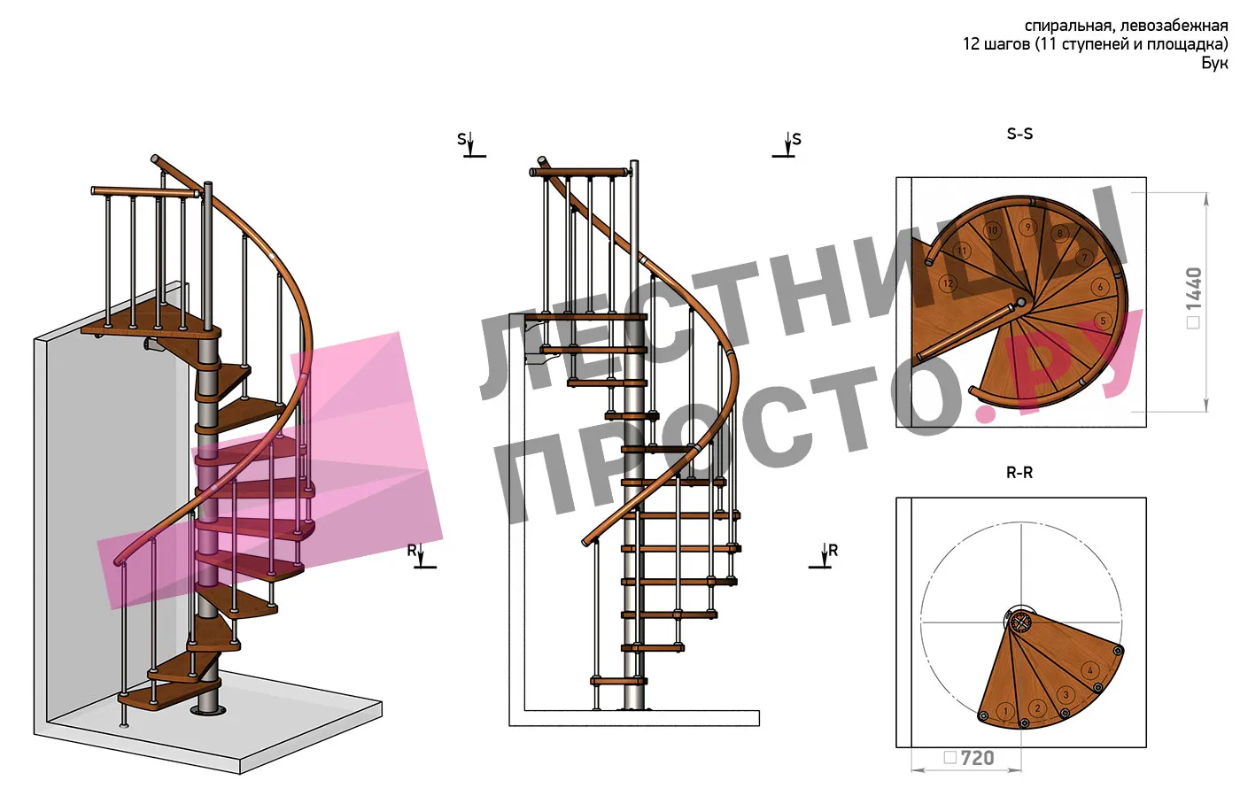 Решение о направлении поворота принимается при сборке лестницы - универсальная конструкция позволяет собрать правозабежную и левозабежную лестницы.