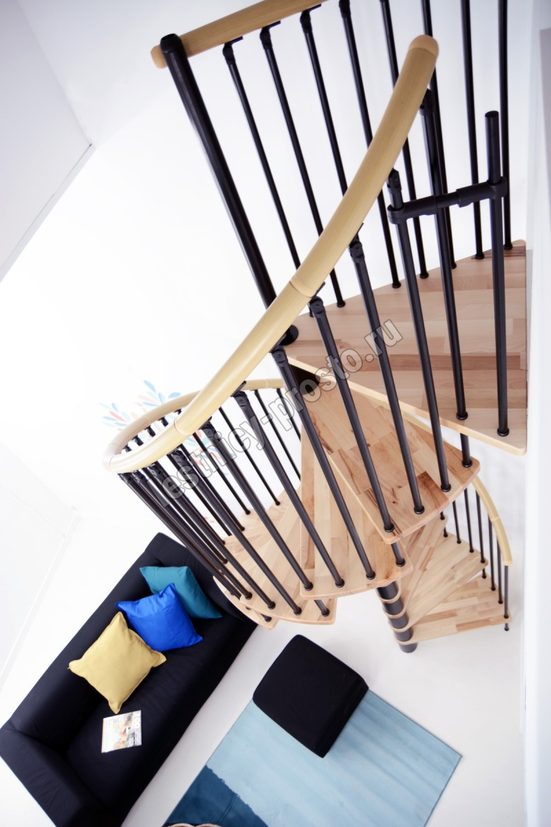 Винтовая лестница SPIRAL WOOD d120 см, черная, лакированный бук